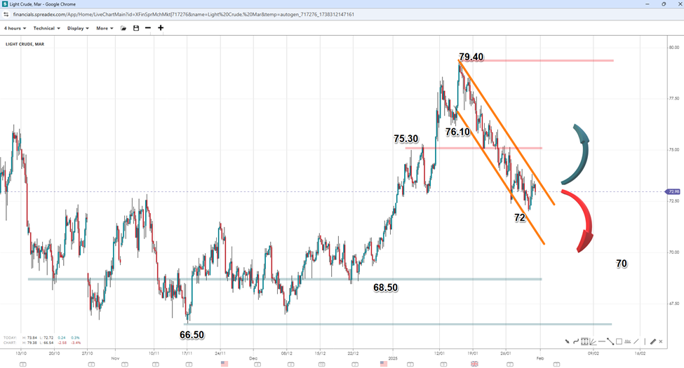 US oil giants are expected to report potentially shaky results following the drop in crude prices towards the end of last year. However, markets could be more interested in prospects under the new administration as Trump prepares to unleash a flurry of tariffs over the weekend on Mexico and Canada, shaking up the oil markets.
