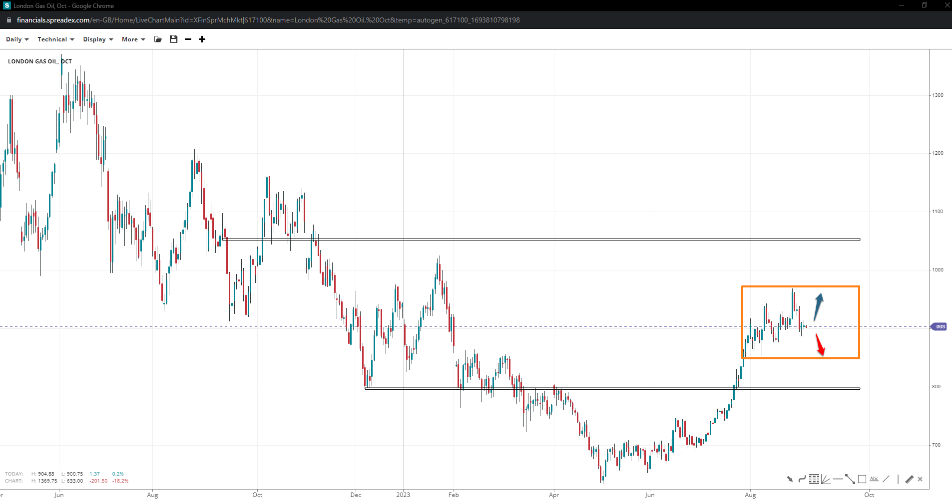 London Gas has soared to $970/cf but failed triple digits as it turned to consolidate, raising chances of a drop to $850/cf before creating the conditions for additional upsides towards $1050/cf. If bearish bets accelerate, it will bring the $800/cf handle into focus.