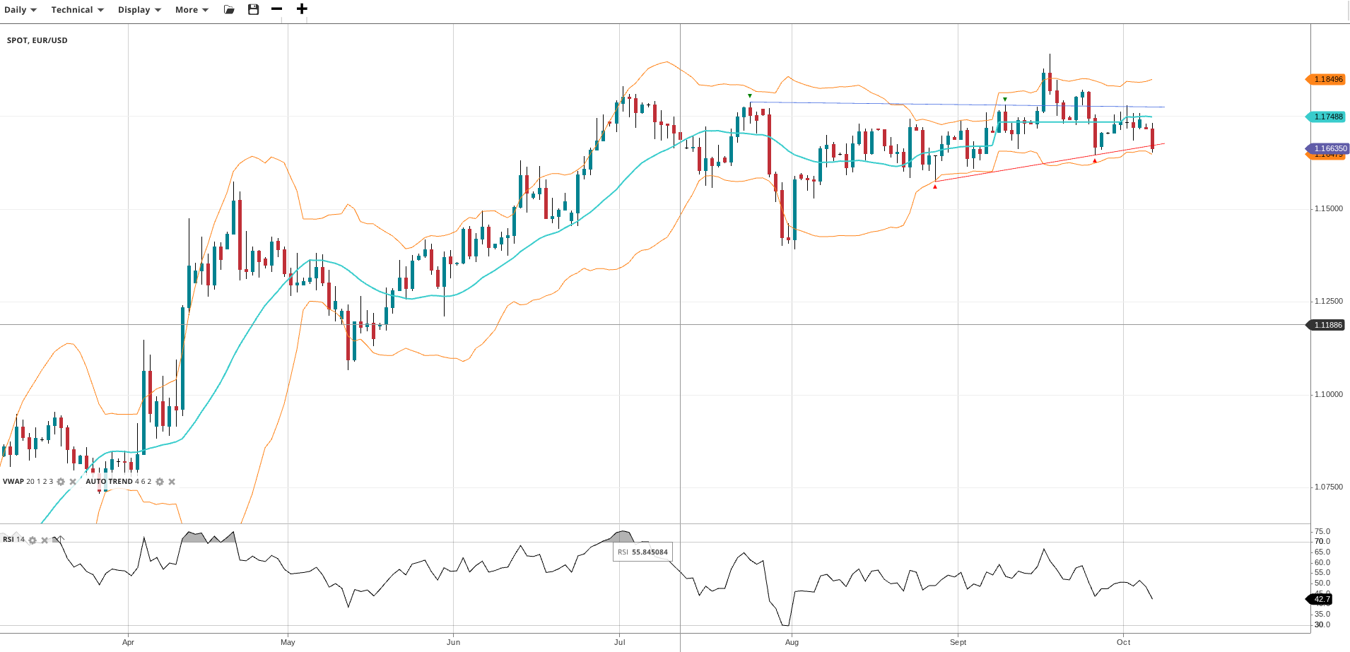 NOTE: These charts use the ‘Pro Trading Tools’ available on the SpreadEx trading platform. To use them, log in to your and click ‘Technical’ from the menu on any chart.