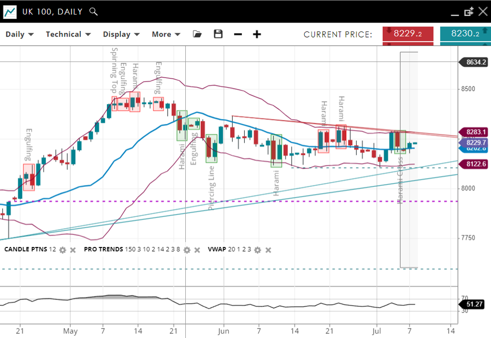 | UK 100 | Neutral | Consolidation | 8230 | 8202 | 8122 | 8283 | 51 |