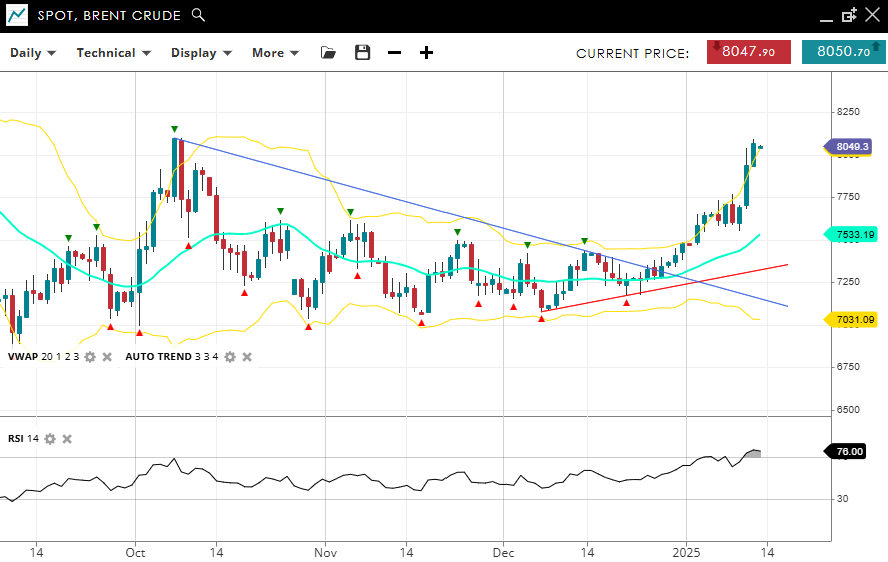 Brent Crude | Bullish | Impulsive | 8049 | 7533 | 7031 | 8040 | 76 |