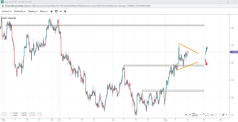 USD/CAD’s retest of $1.3385 has seen prices bounce towards the peak at $1.35, but easing momentum increases the chances of a triangle or sideways consolidation. If bears push prices lower, $1.3250 could be reached beneath $1.33. Otherwise, moving above the top could see prices accelerate towards $1.36.