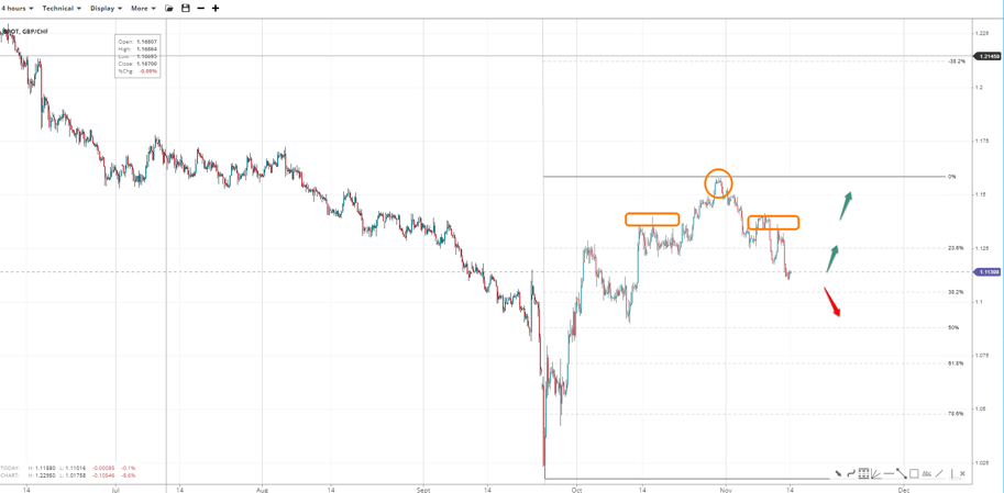 GBP/CHF recently completed the right shoulder of a head-and-shoulders pattern, with the path to the golden pocket wide open. If the Fibonacci supports at 1.0430 and 1.0882 give in, 1.0700 will be a solid floor to break through. On the flip side, 1.1400 is the ‘shoulder’ resistance likely to be reached if the Fibonacci resistance at 1.1250 breaks, paving the way to 1.1580.