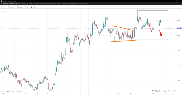 Gold managed to stay above the $2k handle, but losing it will expose the triangle low of $1980/oz and perhaps $1950/oz. A bounce toward 2050/oz might provide the impetus for further upside toward record highs, while a failure past it could enact a sideways consolidation.