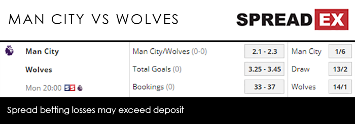Back in August they held City to a 1-1 draw at Molineux, and then repeated the feat against Man United at Old Trafford in September and at Arsenal in November. December kicked off with a 2-1 win over Chelsea, and closed with a 3-1 victory at Tottenham. And most recently they hosted Premier League leaders Liverpool in the 3rd round of the FA Cup, beating an admittedly underpowered Reds 2-1 to set up a trip to either Stoke of Shrewsbury Town. Wolves have a job on their hands trying to keep City to just one goal this time out, however. After a very rough patch in mid-December, Pep Guardiola and co. have definitely got their swagger back. 2018 ended with a 3-1 win at Southampton, and 2019 began with a 2-1 triumph over Liverpool that kept their title hopes alive. While the standard of competition has to be taken into account, City then levelled up in their early January cup appearances. Guardiola was merciless against Rotherham in the FA Cup and Burton in the Carabao Cup, securing 7-0 and 9-0 wins respectively. Though the former contained 7 individual scorers, including an own goal from Semi Ajayi, Gabriel Jesus was the undoubted start of the latter batting, his 4 goals leaving him with a Super Mega PGm of 64-74. That price is only bested by Sergio Aguero who, at a massive 87-102, may make an appearance after missing the last couple of fixtures due to illness. The odds are once again stacked against Monday’s visitors. Spreadex are offering a Man City/Wolves Goal Supremacy spread of 2.1-2.3, alongside a Total Goals spread of 3.25-3.45. Those looking for another Wolves surprise, however, may be interested in the club at a 14/1 fixed odd price to escape the Etihad with all 3 points.