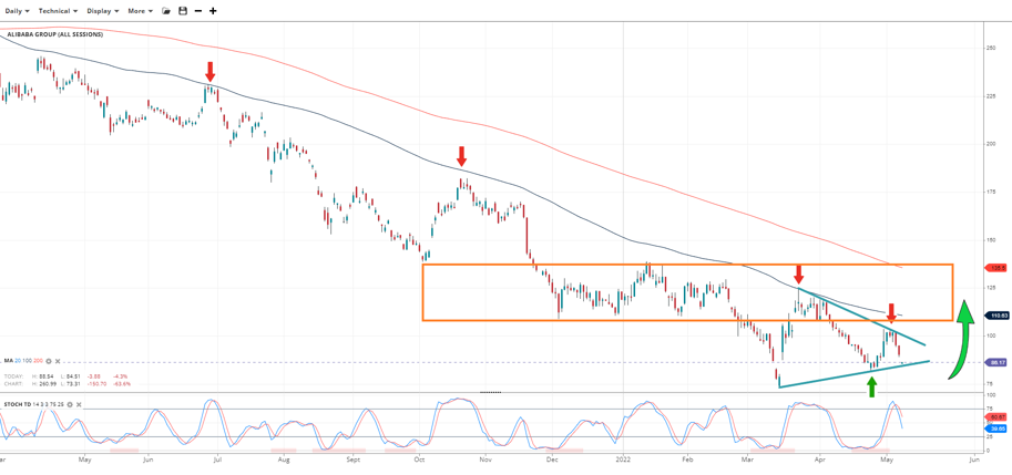 Another source of revenue that could beat the trend is Alibaba's shift towards cloud computing. Competitors have seen growing demand and solid growth in this sector in the last quarter. With revenue in this segment priced in dollars, it could offer some offset from merchandise sales in China. Additionally, traders will likely be looking at an estimate for the potential cost of the Ukraine conflict on the company's sales.