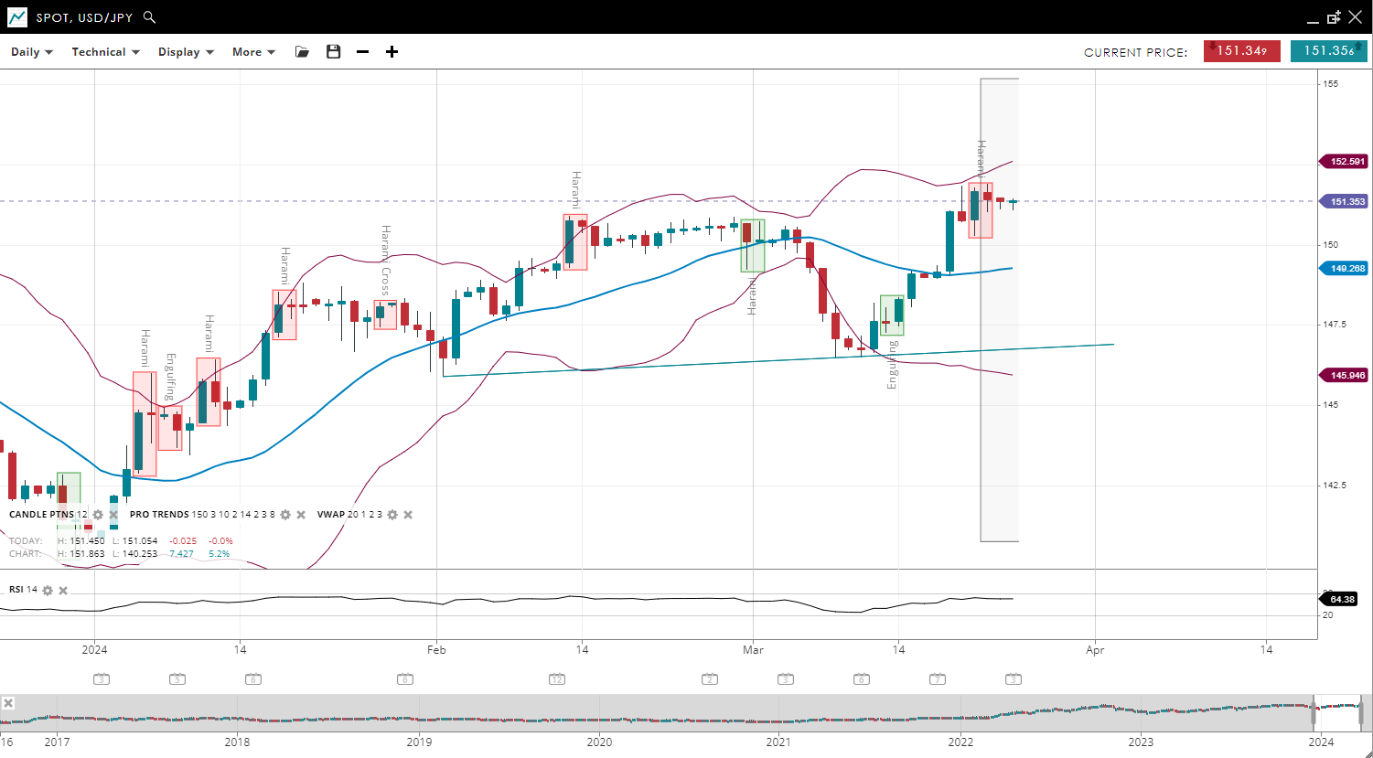 USD/JPY | Bullish | Impulsive | 151.35 | 149.26 | 145.94 | 152.59 | 64 |