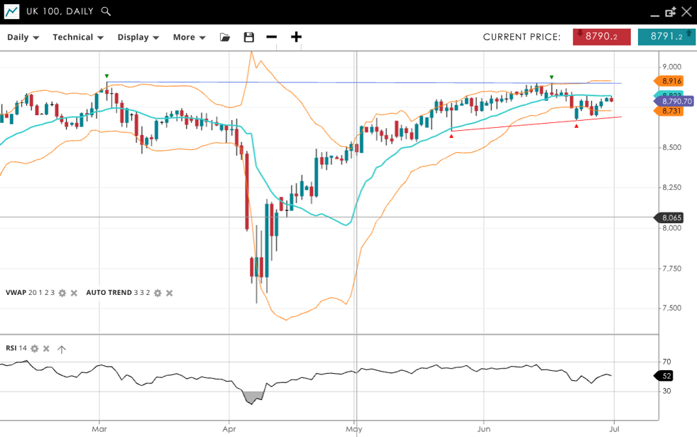UK 100 | Neutral | Range | 8,791 | 8,833 | 8,731 | 8,916 | 52 |