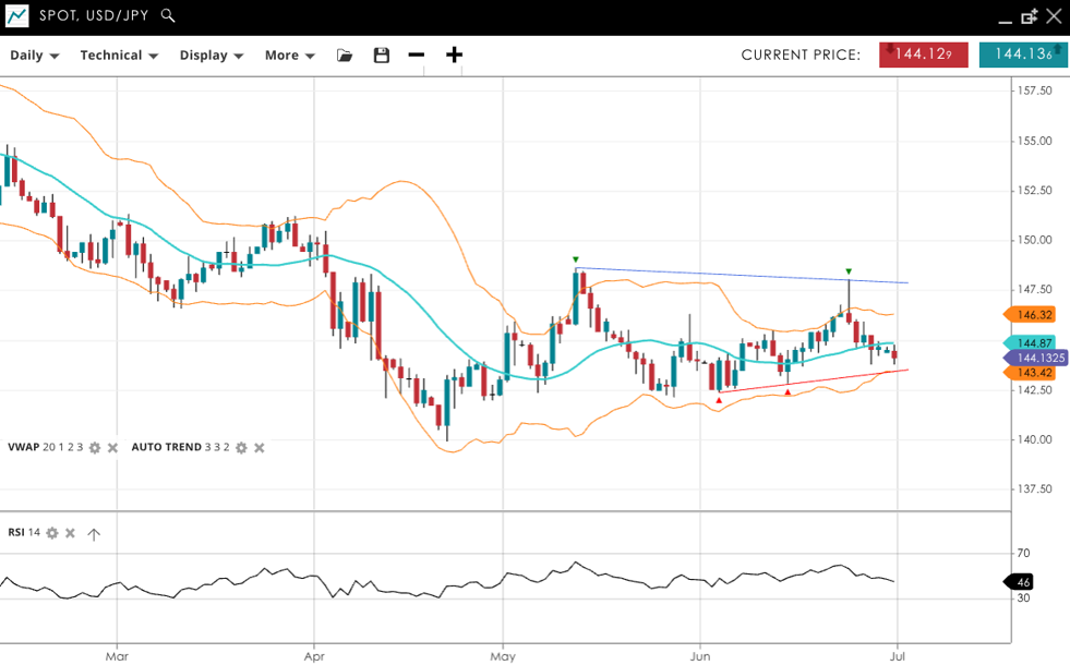 USD/JPY | Neutral | Range | 144.13 | 144.87 | 143.42 | 146.42 | 46 |