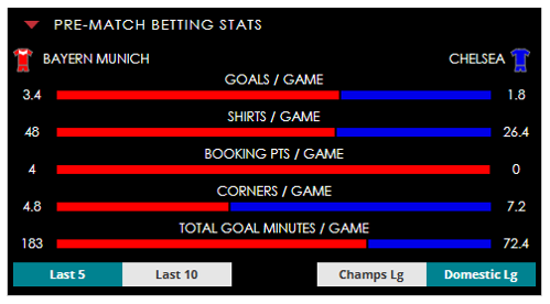 Visit our Bayern v Chelsea betting odds page to view a full range of pre-match betting stats. Simply tap ‘Stats Centre’ for a wealth of information at your fingertips.
